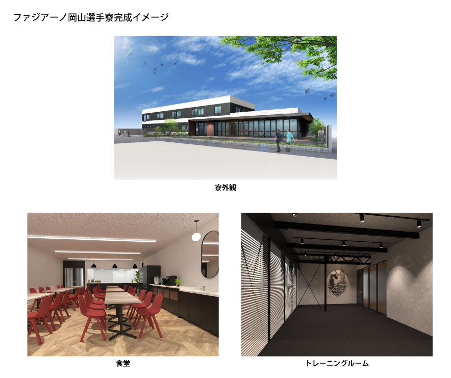 名称 (仮称)ファジアーノ岡山選手寮所在地 岡山市内建物構造/規模 鉄骨造2階建入寮可能人数 最大33名完成時期 2026年3月末(予定)