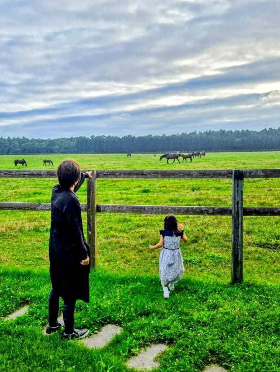 投稿された画像では、北海道のノーザンホースパークを訪れたDAIGOさんが、4歳の娘と馬を眺める様子や、1歳の息子がモニュメントの側で佇む姿などが見て取れます。