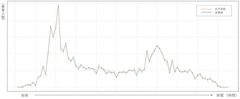 2025年7月中旬に実施した事前検証では、AI(人工知能)技術による予測値と実際の混雑度が同じ傾向を示し、一定の精度が確認できたとしている(図2)。