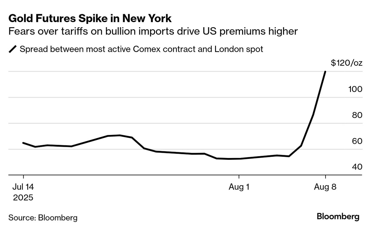 原題:US Adds Surprise Gold Bar Tariff in Blow to Switzerland, FT Says(抜粋)