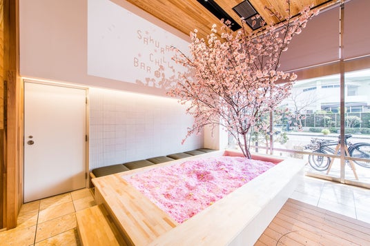 桜の花びらが舞い散る中でお花見体験ができる特別なインドア花見体験を提供。