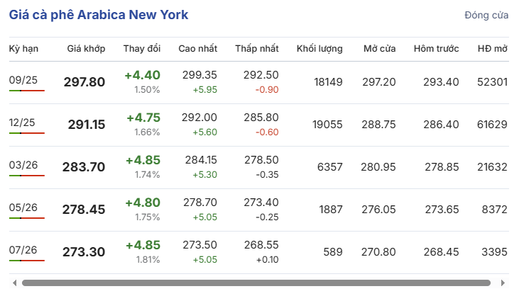 ニューヨーク市場では、最も取引量の多いアラビカコーヒー先物が2%近く上昇し、これまでの下落を完全に反転させた。