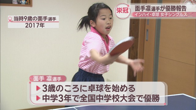 面手選手は3歳のころに卓球を始め、中学3年で出場した全国中学校大会で日本一に輝きました。
