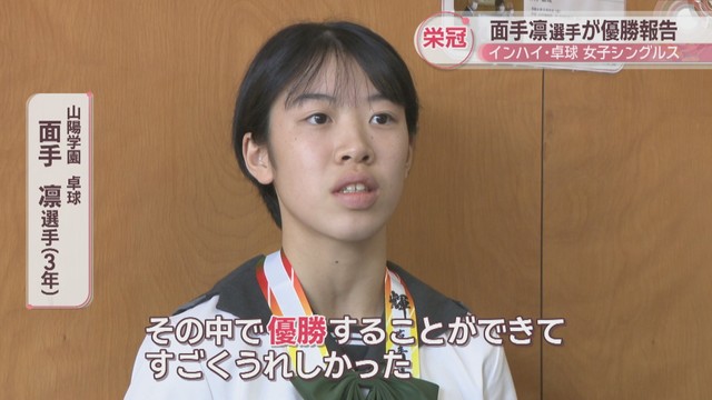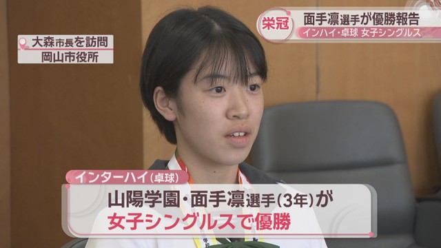 中国5県を中心に高校生が熱戦を繰り広げている2025年のインターハイ。卓球・女子シングルスで優勝した山陽学園の面手凛選手が8日、岡山市長を訪問しよろこびを報告しました。