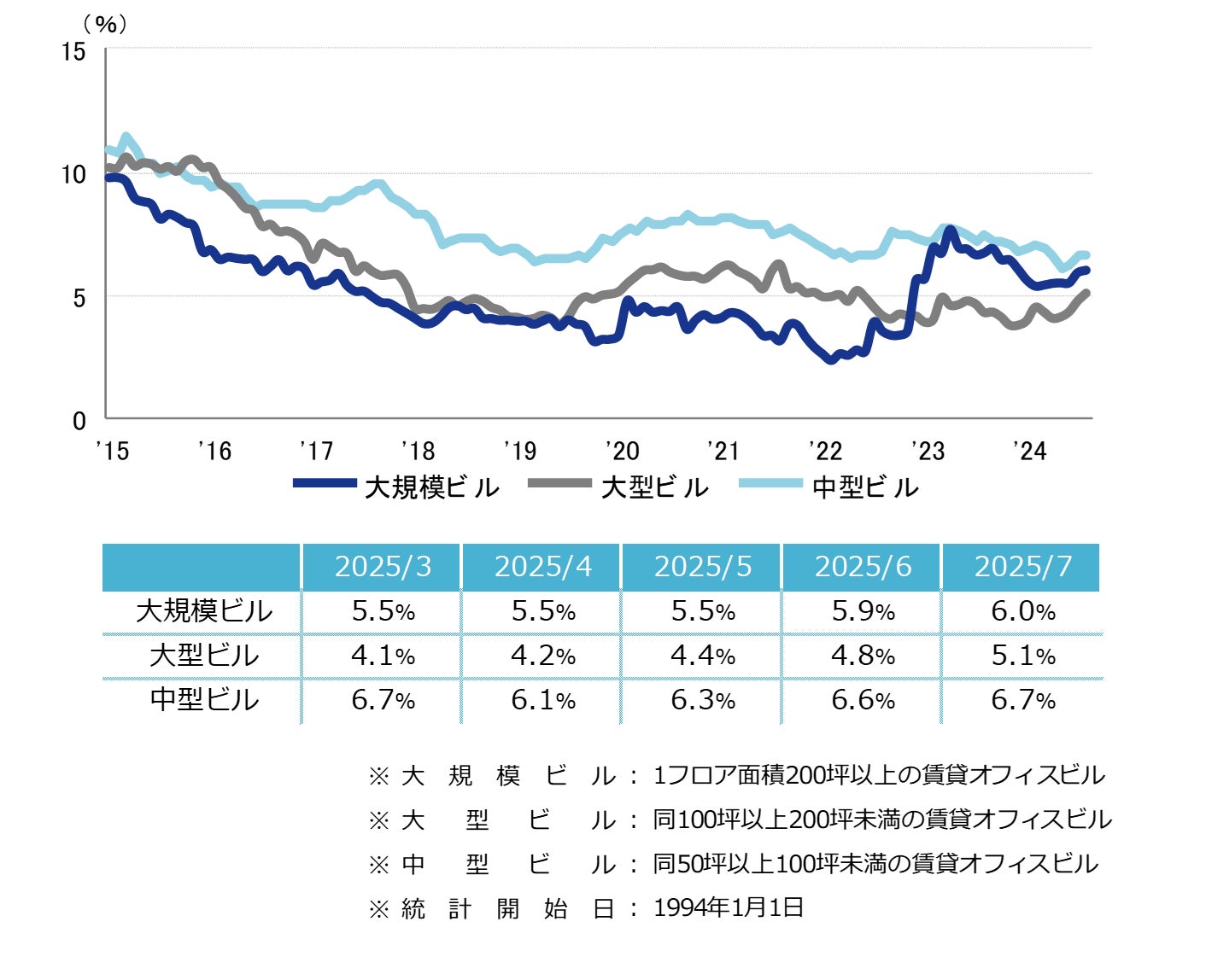 主要エリアでは築年数が経過したビルでテナント誘致に時間を要する傾向が見られるものの、引き続き募集床の品薄感は強い状況となっている。