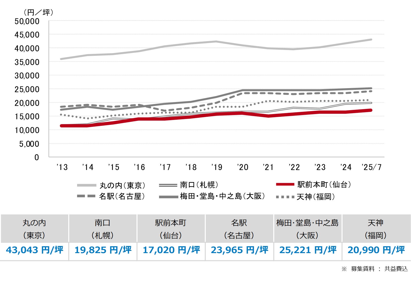 <募集賃料の推移(6大都市 大規模ビル・主要駅前地区)>