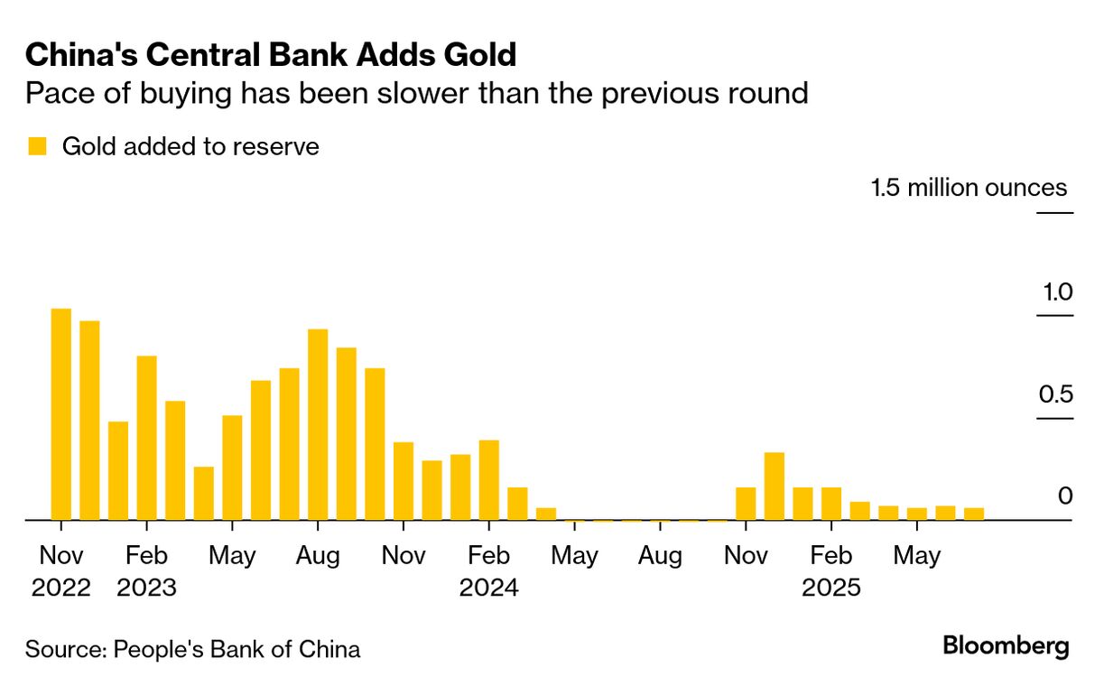 中国人民銀行(中央銀行)は7月、9カ月連続で金保有を増やした。準備資産でドル離れを進める動きの一環とみられる。