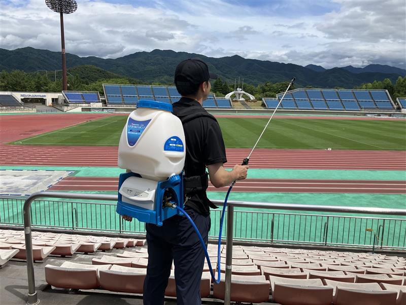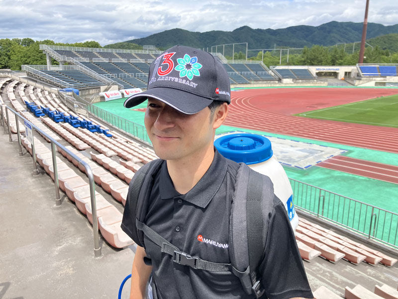 丸山製作所様ご提供の「ウルトラポンプ(ウルトラファインバブル搭載)」を搭載した《ミストで涼ませ隊》が、スタジアム場外をミストを噴霧しながら周遊いたします。