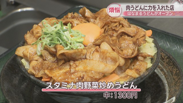 このほか、このお店独自のメニューとして通常の3倍の肉が乗った「スタミナ肉野菜炒めうどん(中:1300円)」。