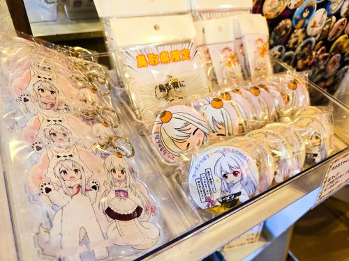店内でおたねちゃんグッズの販売もしています。缶バッジ、コラボアクア、キーホルダーが並んでいましたよ。