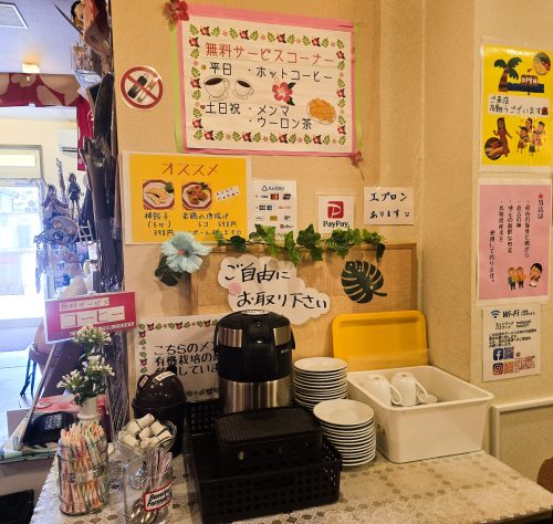 そしてなんと無料サービスもあります。平日はホットコーヒー、土日祝日は、メンマ、ウーロン茶が付きます。