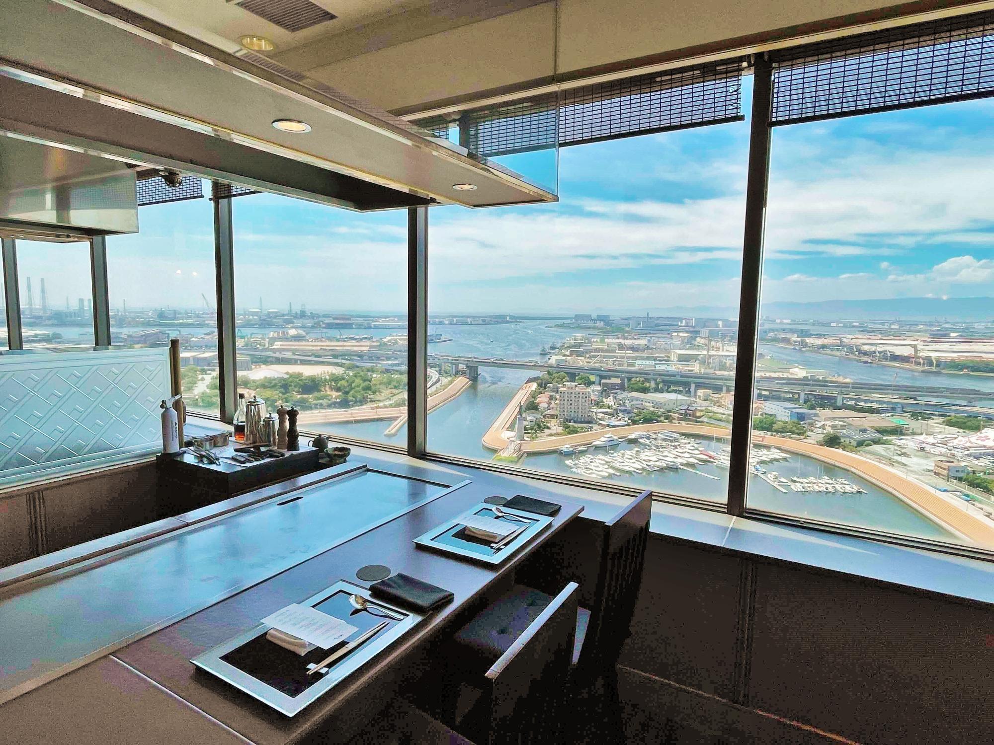 はらぺこライターの旅人間です。南海本線・堺駅に直結するホテル アゴーラ リージェンシーの25階に、「鉄板焼 なにわ」がオープンした。堺旧港や大阪市内を一望できる大パノラマを背景に、全席カウンターで味わう本格鉄板焼。目の前で炎が立ち上る迫力のパフォーマンスもあって、すでに注目を集めている。