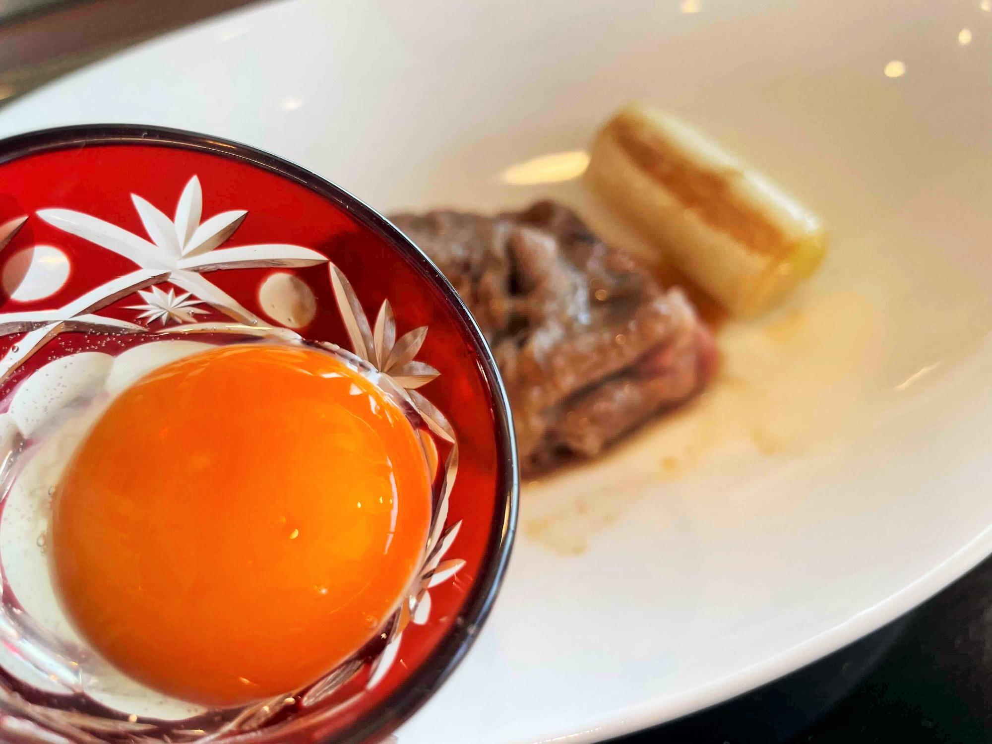 しかも、一品目から「大阪ウメビーフの鉄板牛SUKIYAKI」。いきなりメインディッシュの登場といった印象だ。