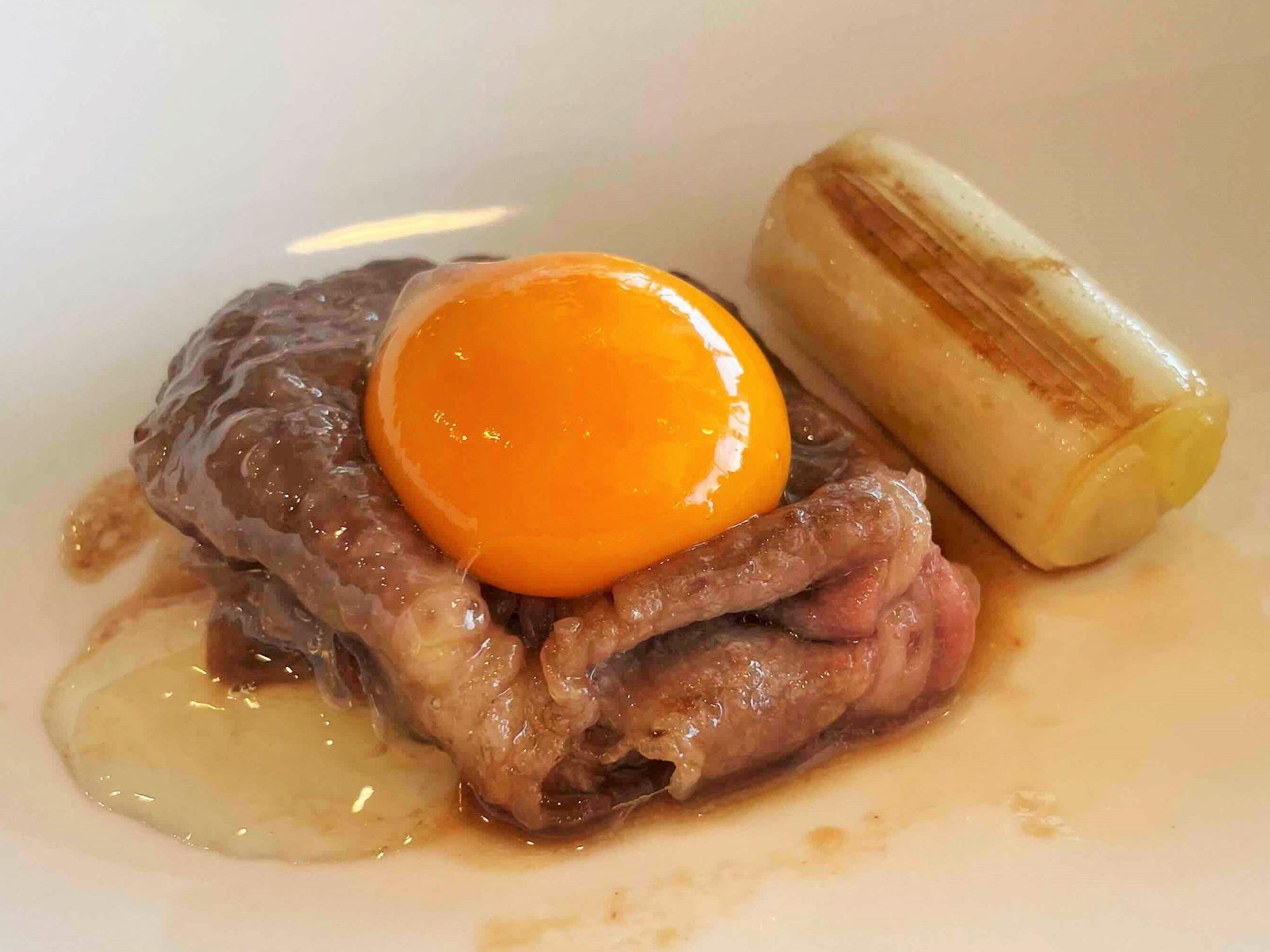 続いて卵を絡めると、すき焼きの特徴がギュッと凝縮されたような旨味に包まれる。まさに唸るほどの一品だ。