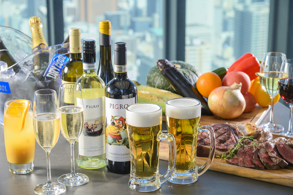 ドリンクは、ビール、イタリアワイン、ノンアルコールが飲み放題。