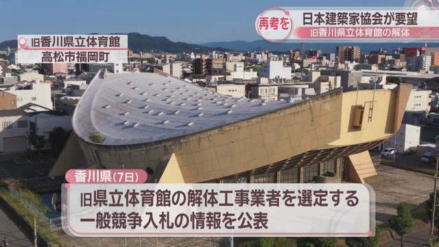 世界的な建築家、丹下健三が設計した旧香川県立体育館の解体に向け、香川県が工事の入札手続きに入ったことを受け、日本建築家協会が12日、保存と活用を求める要望書を知事に提出しました。
