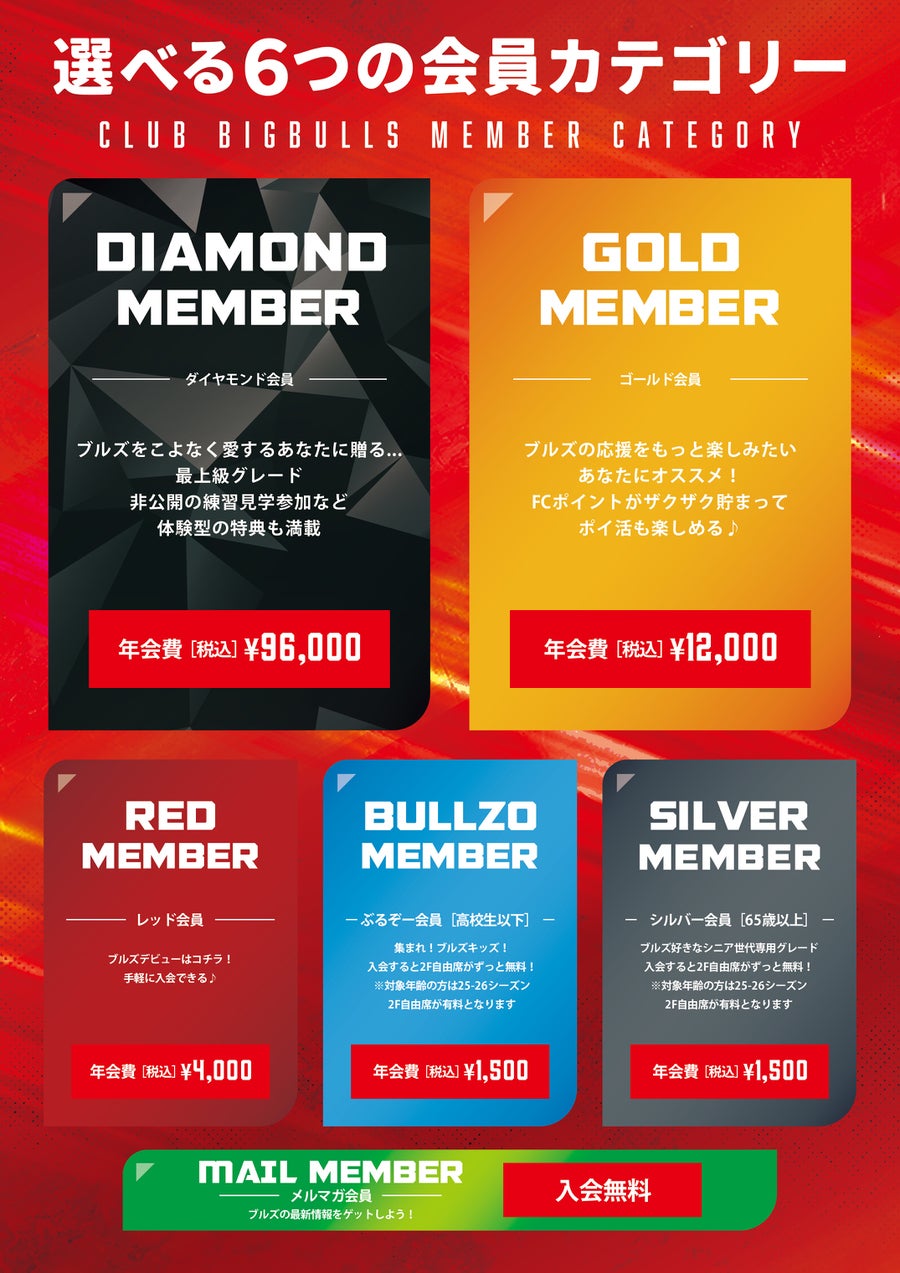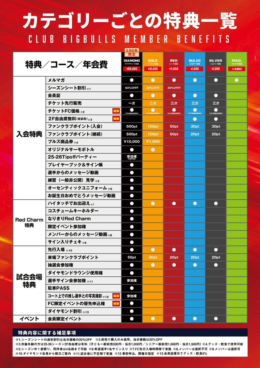 2025-26シーズン CLUB BIGBULLS 会員グレード・特典