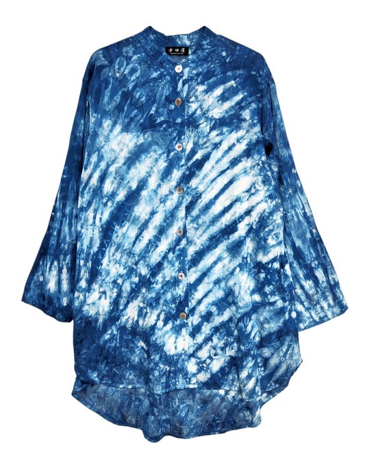藍染の伝統の技術を生かし、モダンなデザインで染め上げたブラウス。