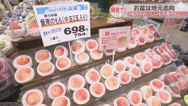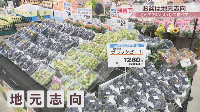 13日からお盆です。お盆休みに入った方も多いと思いますが、香川県のスーパーでは帰省した人に向け「地元志向」をキーワードにしています。