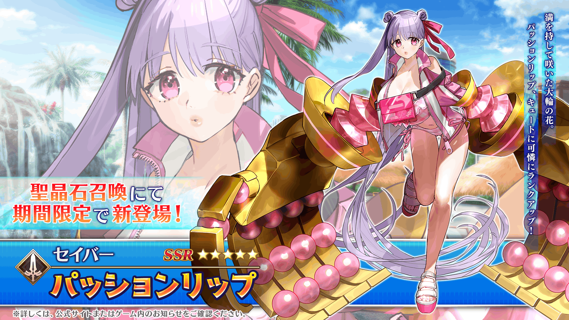 また、期間限定で「カルデア・U-サマーアイランド パッションリップ(セイバー)ピックアップ召喚」を2025年8月13日(水) 20:00より開催することを発表いたしました。