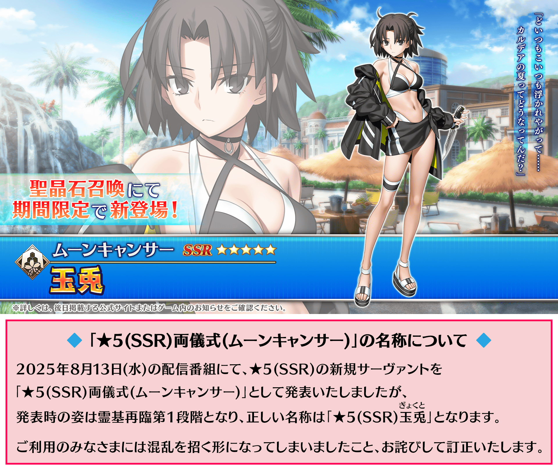 ◆「カルデア・U-サマーアイランド 玉兎ピックアップ召喚」開催予定!◆
