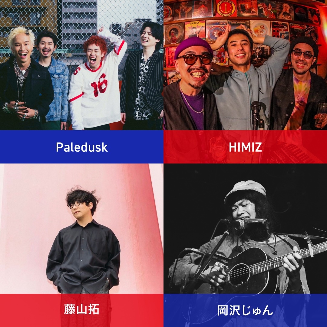 昨年に引き続き、Paledusk、HIMIZ、藤山拓、岡沢じゅんの出演が決定。加えて、りんご音楽のライブオーディション『RINGOOO A GO-GO』から選出されたアーティストが12組発表され、9月1日(月)に『RINGOOO A GO-GO』選出アーティストによる『りんご音楽祭2025ウォームアップライブ』が渋谷 HOMEにて開催することも決定した。