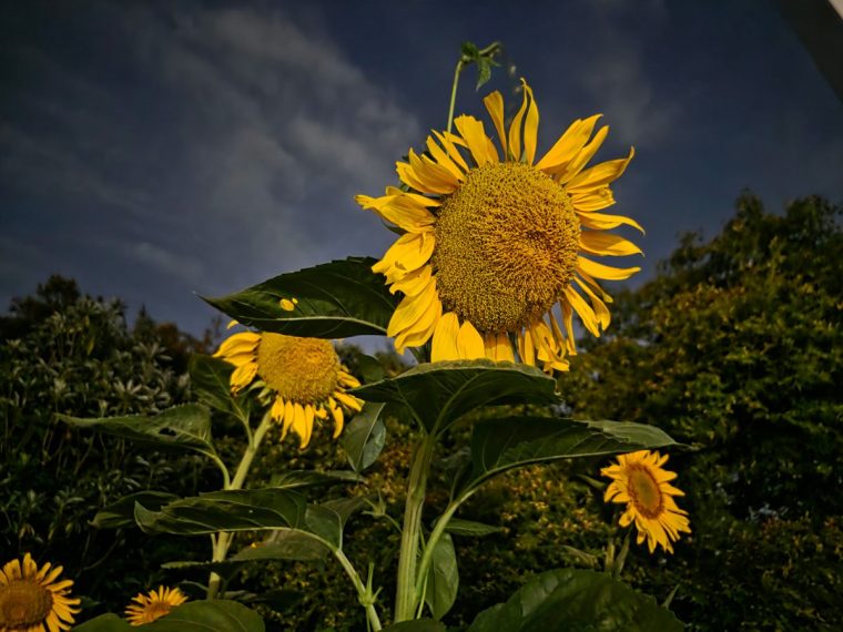 ↑Z Fold7のメインカメラで撮影した夜のひまわり。