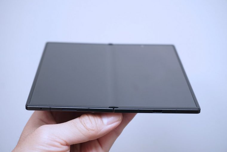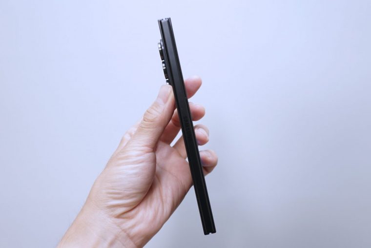 ↑本体を閉じたZ Fold7。薄さは約8.9mm。