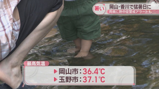 ウェザーニューズによりますと14日の岡山市の最高気温は36.4℃、玉野市では37.1℃と猛暑日に。岡山県では16の観測地点のうち8つで香川県でも7つの観測地点のうち3つで、最高気温が35℃を超え猛暑日となりました。