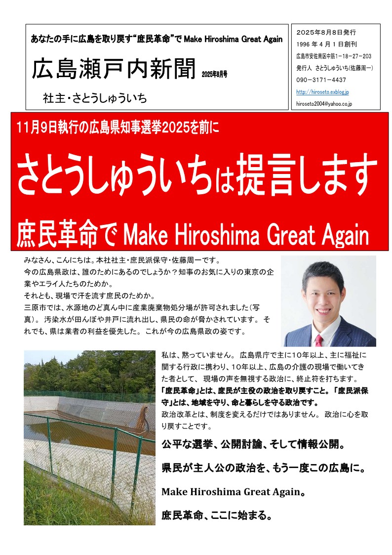 政治は、あなたのものです。 声を上げれば、変えられます。 11月の広島県知事選挙。 あなたの一票が、広島の未来を守る力になります。