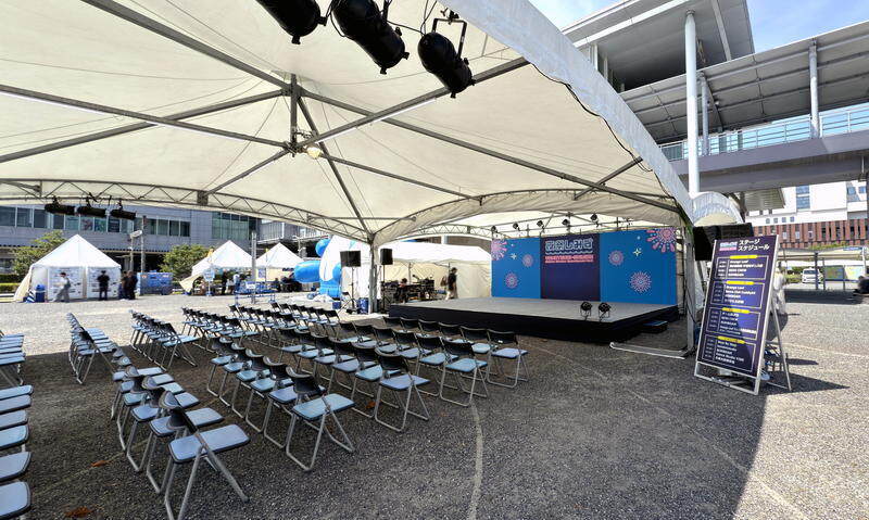 各日17時より、地元・学生のダンスチームなど中心にステージパフォーマンスイベントも開催。広場中心・駅寄りの辺りにテントとステージが用意されています。