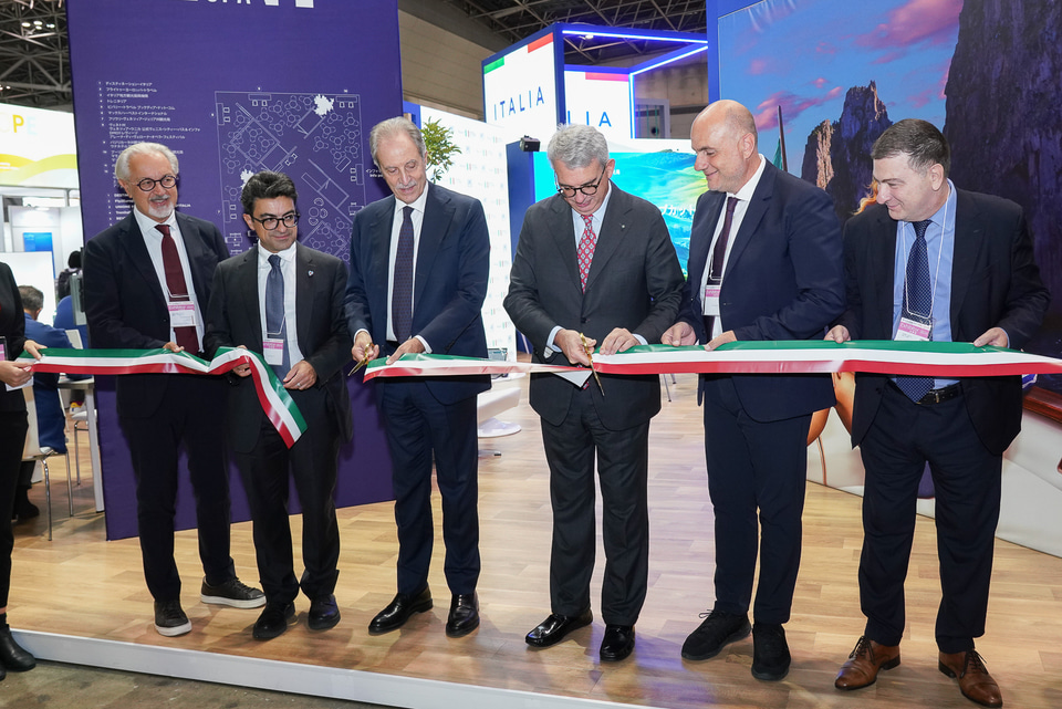 エニット・エッセ・ピー・ア(イタリア政府観光局)ブースのジャンルイジ・ベネデッティ駐日イタリア大使が参列したテープカットセレモニー