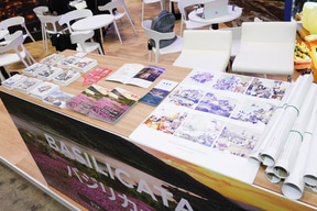 ブースは、イタリアの名画ヴィーナスの誕生のビーナスを大胆にデザインしており、見応えがある。各州ごとに分かれてプレゼンも実施。週末にはクイズイベントの参加で、クリファイル、メモ帳、カトラリーセットのオリジナルグッズプレゼントがあるとのこと。