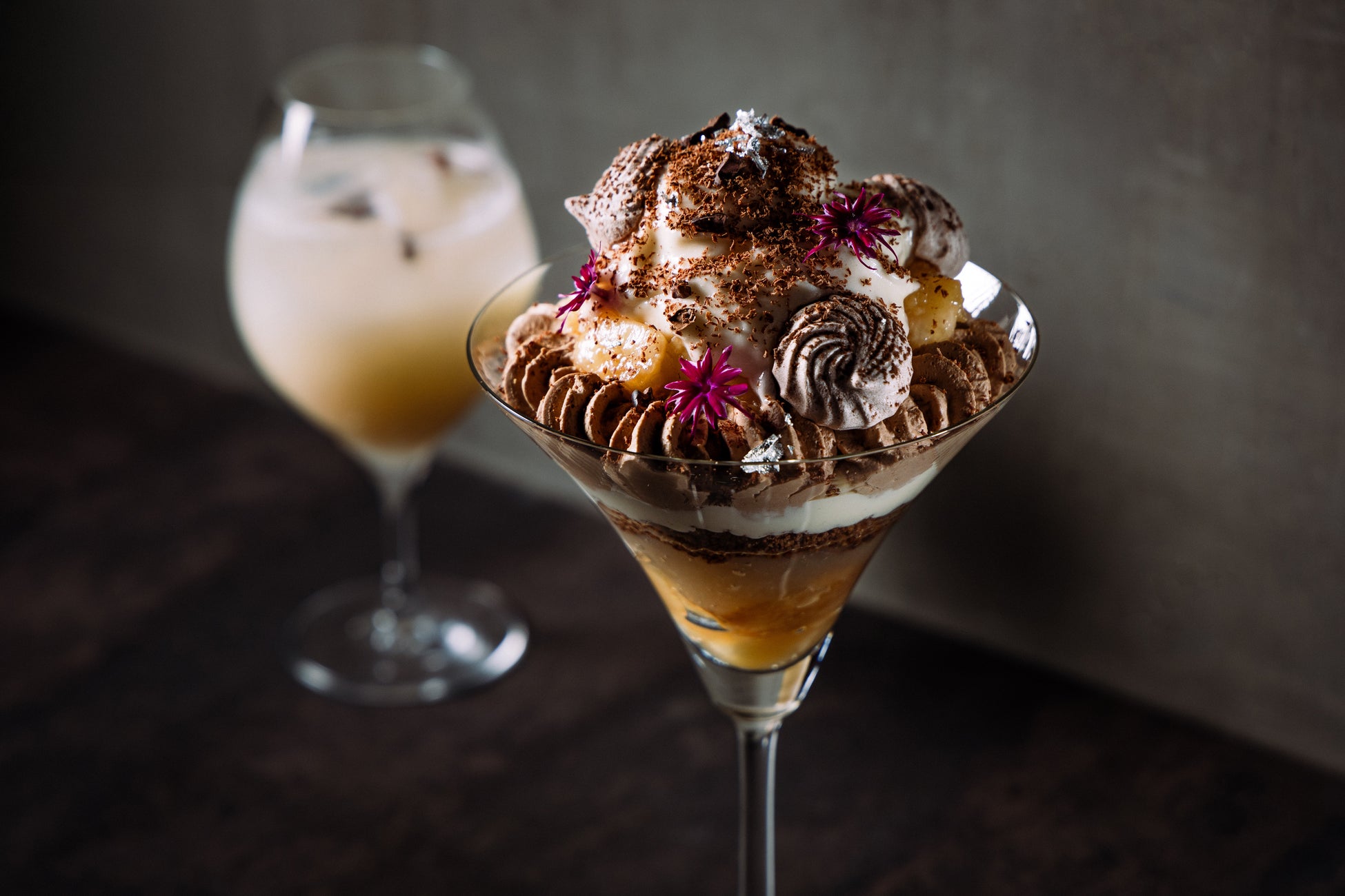 おいしさを最大限に引き出すために綿密に計算されたパフェとそれに合わせたペアリングカクテル。