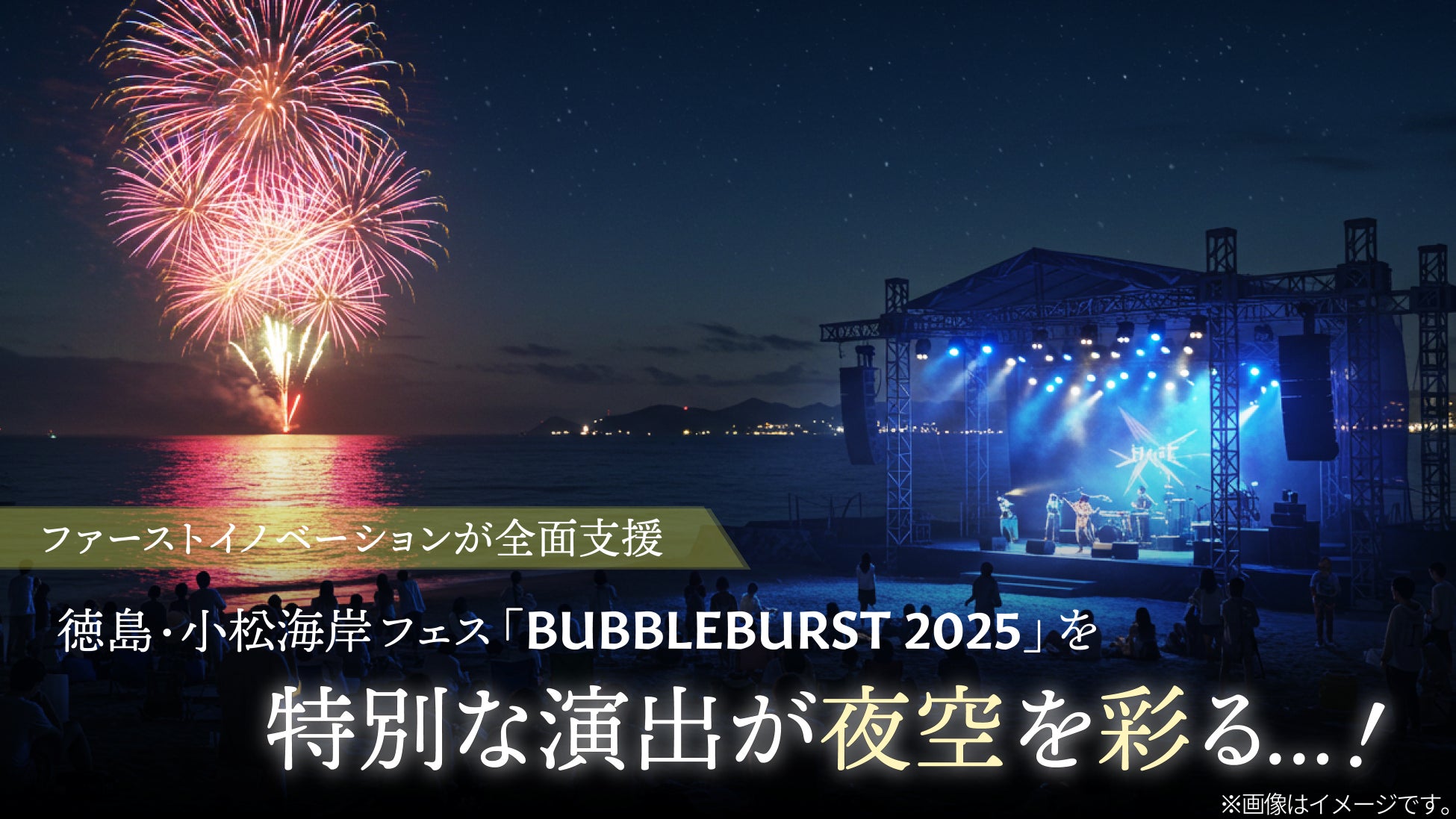 株式会社ファーストイノベーション(本社:東京都中央区晴海3-13-1 DEUX TOURS EASTタワー52F、代表取締役社長:木ノ根雄志、以下ファーストイノベーション)は、2025年8月8日(木)に法人化された官民連携の地方創生団体「一般社団法人つながり応援」(旧:つながり応援プロジェクト)の一環として、木ノ根雄志ならびに梶川隆史が中心となり、徳島県徳島市・小松海岸にて2025年8月23日(土)・24日(日)に開催される、地域共創型の無料野外フェス「BUBBLEBURST 2025」への支援を実施しています。