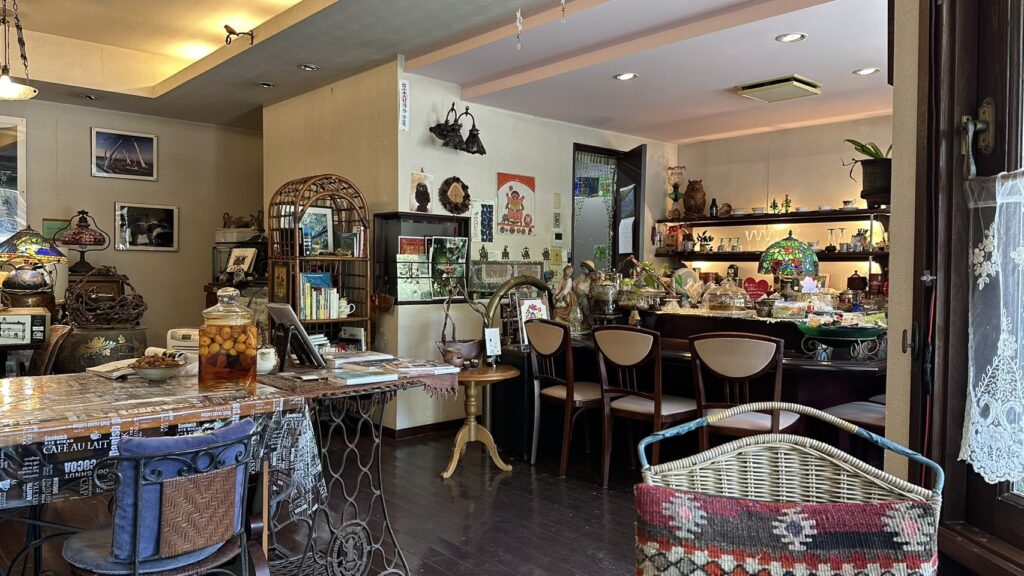 店内はアンティーク調の家具やランプ、ステンドグラスが並び、どこを切り取っても絵になる雰囲気。