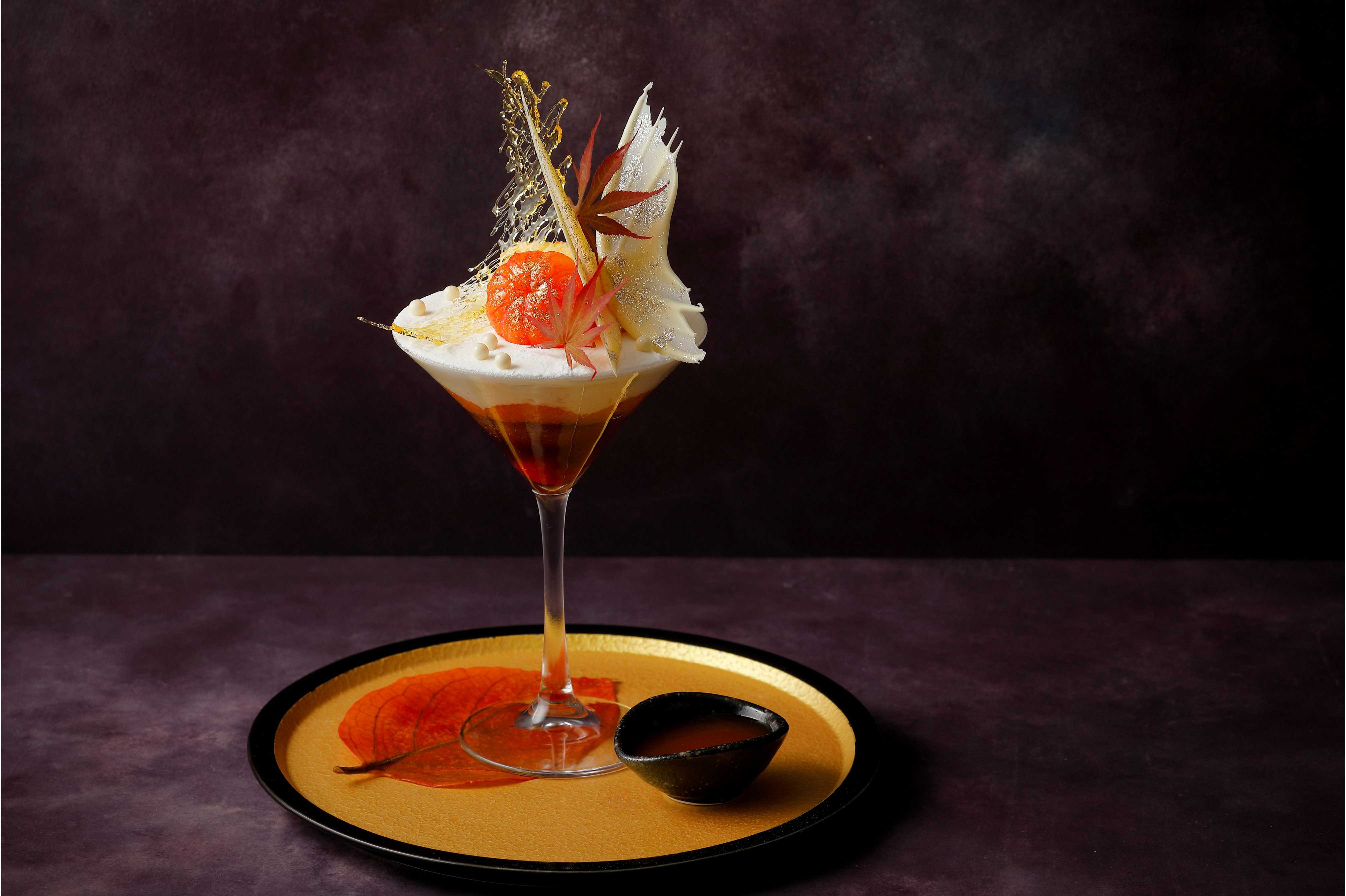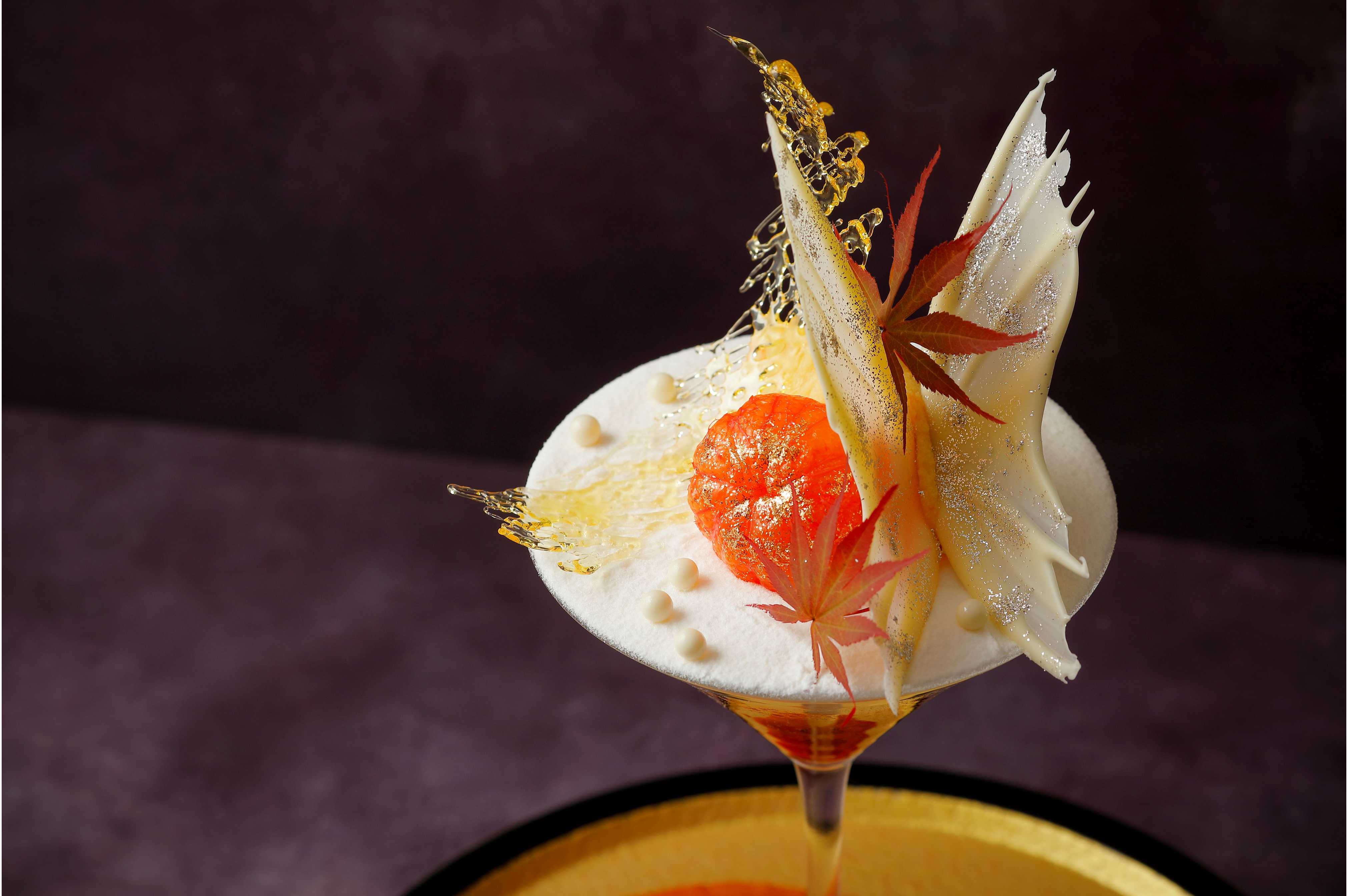 生産量日本一を誇る和歌山県産のみかんと旬のさつまいもをメインに、秋の実りを贅沢に詰め込んだパフェ。みかんのコンポートをはじめ、さつまいもを合わせた軽やかなエスプーマやスイートポテトなどみかんの香りと風味を口いっぱいに感じられます。秋ならではの深い甘さとみかんの清々しさを表現したパフェは、夜の〆パフェとしてもお楽しみいただけます。