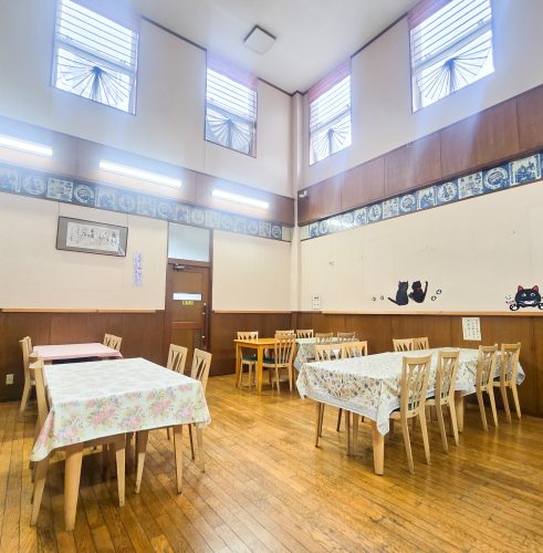天井が高くゆったりとした店内には、テーブル席が並んでいます。