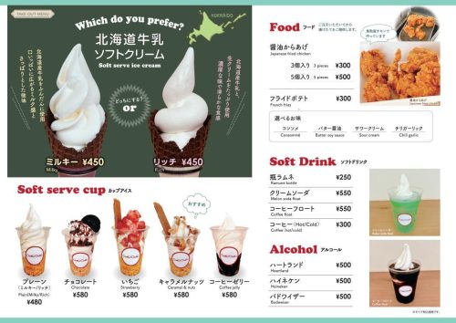 オーナーが北海道の知り合いから、特別に直送で仕入れているという、ソフトミックス。「ミルキー」と「リッチ」の2種類から選べます。
