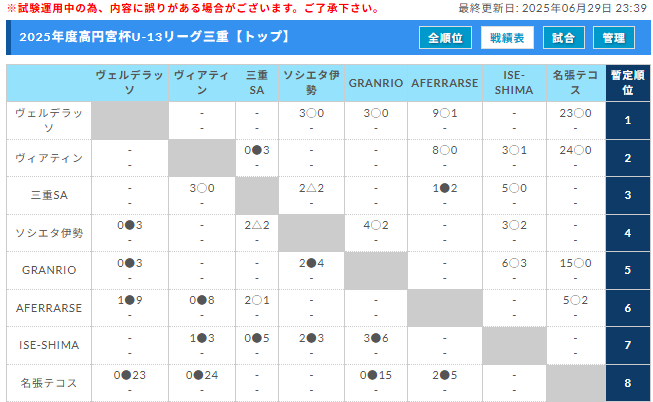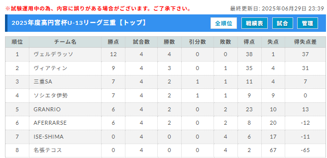 高円宮杯JFA U-13サッカーリーグ2025三重