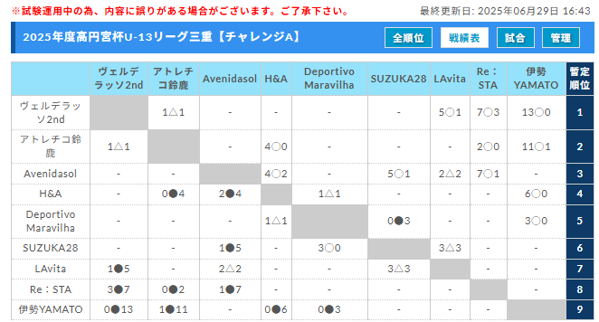 2024年度 高円宮杯JFA U-13サッカーリーグ三重 チャレンジリーグ 2/9結果募集中 2/1までの結果掲載