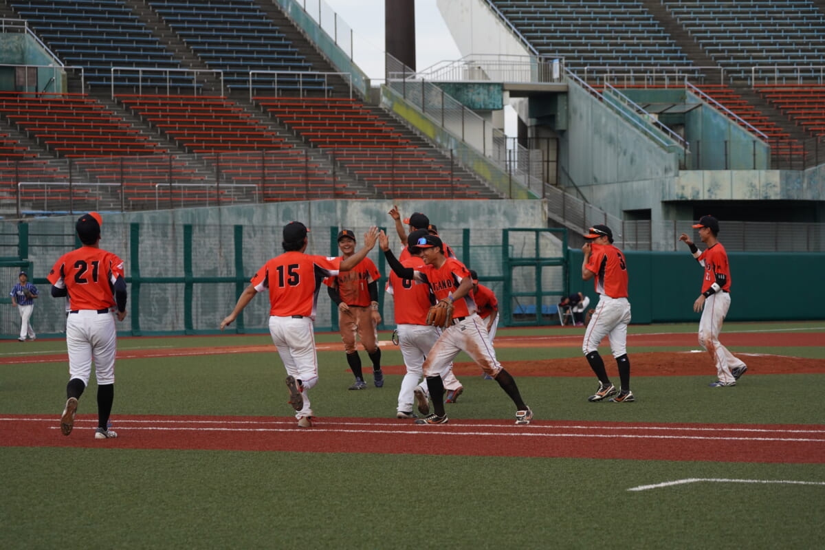 ↓ 先制2ランの大熊(30)を迎える長野ベンチ