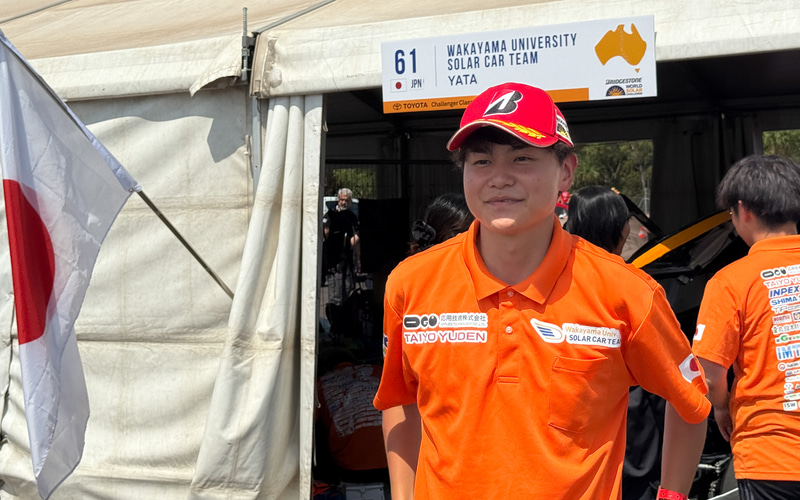 「和歌山大学ソーラーカープロジェクト」は、前回の2023年大会に初出場し、2回目の挑戦。今大会に向けて約1年半をかけて開発した新車両「YATA(ヤタ)」は、前回大会で約3000kmのコースのうち1000kmでリタイアしてしまった経験を糧にしたという。
