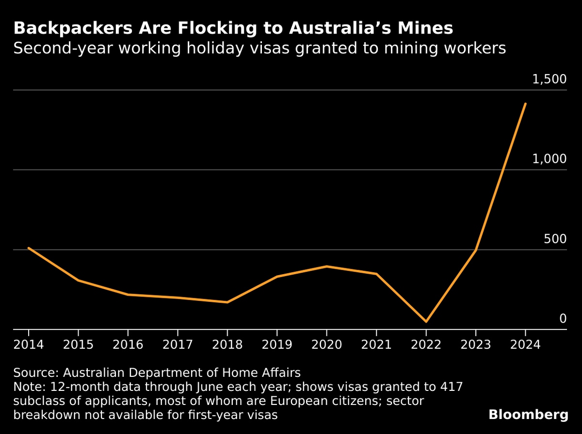 豪政府は、鉱業分野で働く外国人に対して23年7月−24年6月に2年目のワーキングホリデービザ1414件を発給。事実上の1年ビザ更新だ。前年度の500件未満から大幅に増加した。