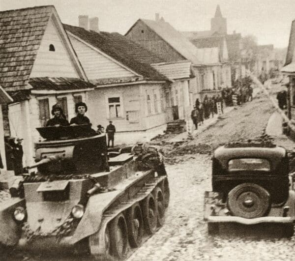 1939年9月のソ連によるポーランド侵攻の際、ラコフの町を通過する赤軍の戦車(写真:GRANGER.COM/アフロ)