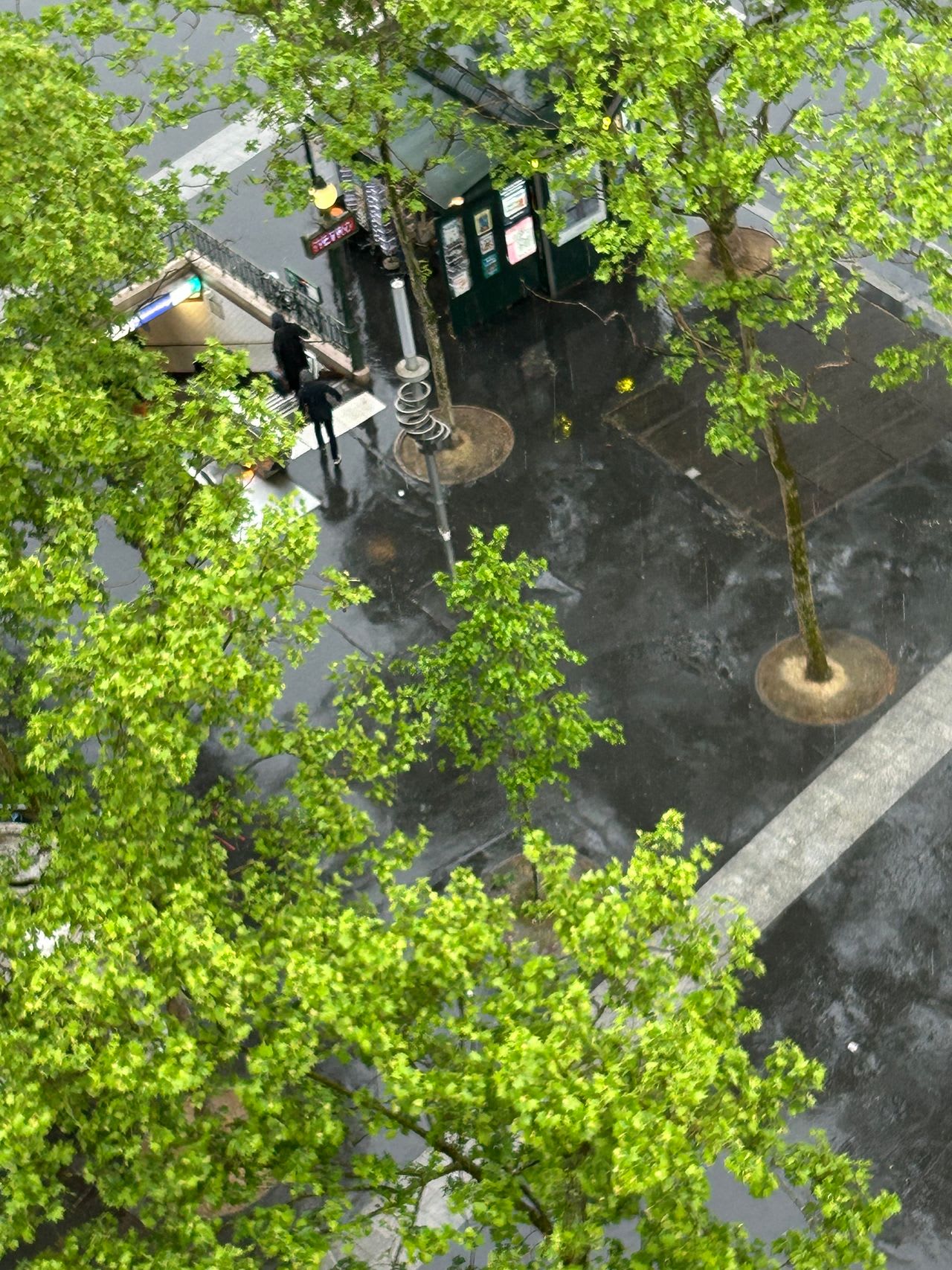 パリでは、にわか雨や通り雨が多く、みんな慣れているのでしょう。 小雨であればそのまま歩き続けます。もしくは「すぐ止む」と見越して、お店の軒先やカフェに入って雨宿り。慌てて傘を買ったり、走ったりはしません。