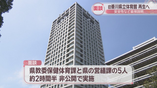 香川県が解体を決めている旧県立体育館の再生を目指す民間団体が、28日、県教委の担当者らと面談しました。「急いで解体する必要はない」と入札手続きを止めるよう求めています。