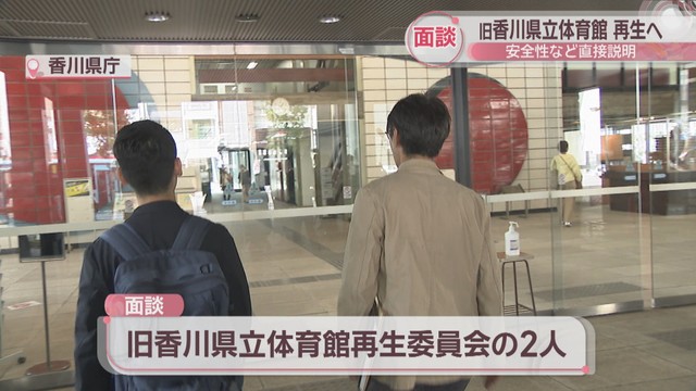 地元の建築家らが設立した「旧香川県立体育館再生委員会」のメンバー2人が28日午後、香川県庁を訪れました。