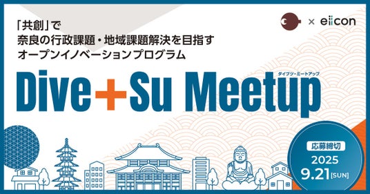 日本最大級のオープンイノベーションプラットフォーム「AUBA(アウバ)」を運営する株式会社eiicon(エイコン 本社所在地:文京区後楽、代表取締役社長:中村 亜由子、以下「eiicon」)は、2025年8月26日より、奈良県とともに取り組む地域課題解決プログラム『Dive+Su Meetup(ダイブツ・ミートアップ 以下 本プログラム)』にて、県および市町が提示する行政課題を発表し、課題の解決を共に目指すスタートアップ等※のパートナー企業を全国から募集開始しました。