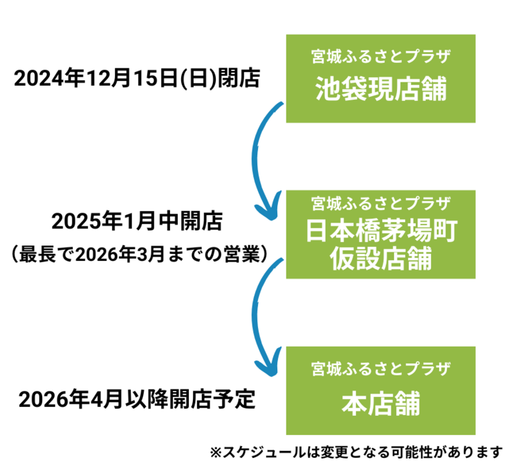 ・2025年1月中:「宮城ふるさとプラザ」(日本橋茅場町仮設店舗)の開店